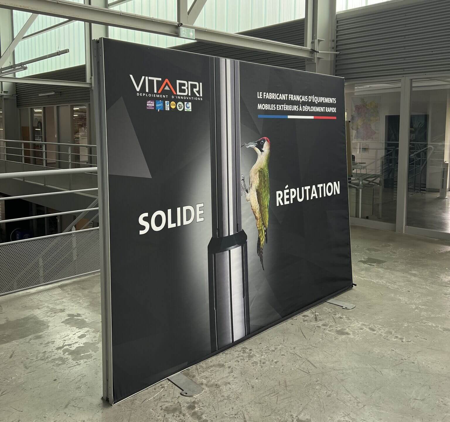 Transformez votre stand en véritable mur d’image avec notre cadre aluminium pour toile tendue : Support publicitaire premium, fabriqué en France.